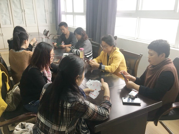 为了丰富我校教职工业余生活,进一步构建和谐校园,扎实推进校园文化建设。根据校工会的活动要求,艺术设计系分工会于2016年11月7日在丹青楼404室组织开展了扑克牌选拔赛活动。
