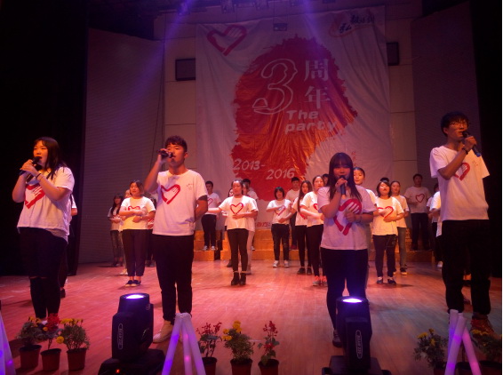 压轴的节目便是由志愿者们精心编排的大合唱“和你一样”。他们用动人的歌声和整齐手语向观众们展现了他们的宗旨:奉献·友爱·互助·进步。在最后,大家一起为志愿者送上了生日快乐歌和三周年庆典的生日蛋糕。志愿者们品尝着蛋糕,脸上洋溢着幸福的笑容。