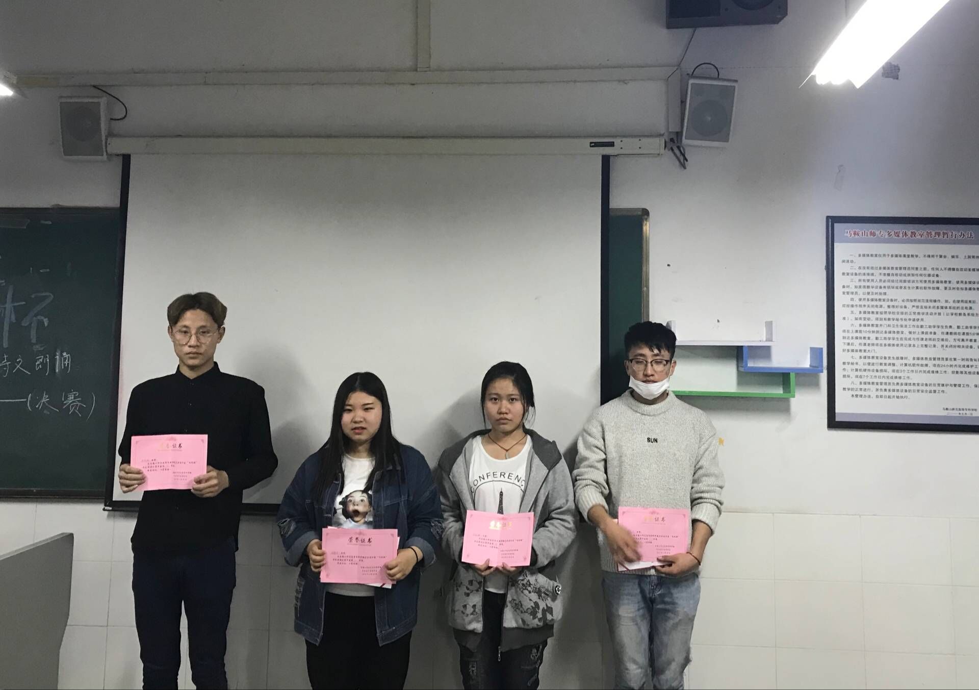 2018年3月29日晚,艺术设计系在丹青楼303教室举行“讯飞杯”主题演讲比赛决赛。经过初赛选拔的7名选手进行了激烈角逐。系学生会的有关负责人出席并担任评委。 比赛正式开始后,7位选手准备充分、精神饱满、声情并茂,他们用精彩的演讲把比赛一点点推向高潮。最终,7号选手魏宇的《乌骓别霸王》力压群雄获得一等奖,1号选手汤皓宇的《一棵会开花的树》获得二等奖,3号选手巴永承的《沁园春》获得三等奖,现场为获奖者颁发了奖状。据了解,一等奖选手将代表艺术设计系参加校级比赛的角逐。(文/图 艺设系学生会宣传部徐林 校审/蒋璐璐 审核/杨俊波)