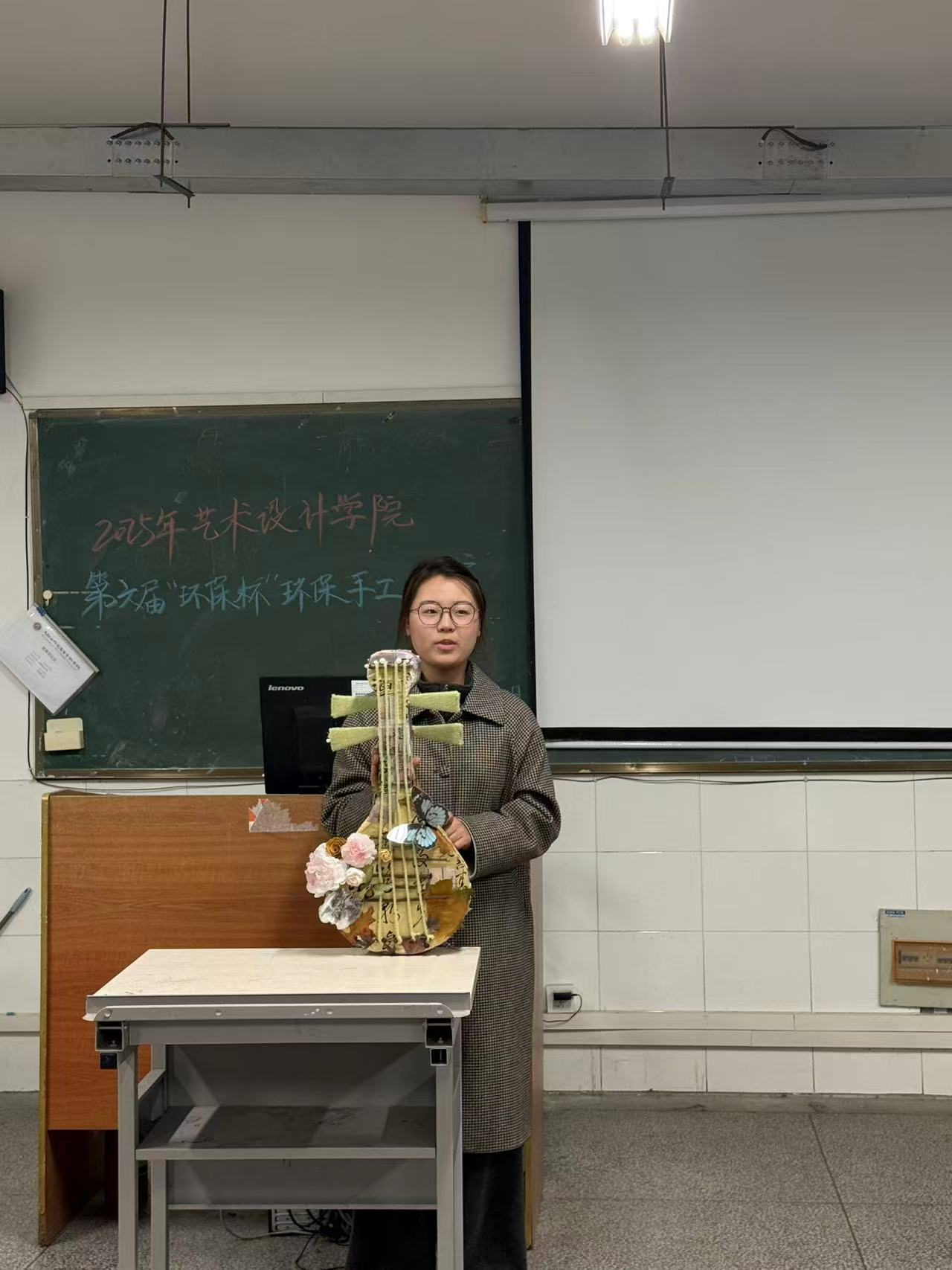 比赛现场,一件件主题鲜明、构思巧妙的作品整齐陈列,吸引了众多同学驻足观赏。评委团围绕“环保性、创意性、实用性、工艺性”四大维度,对参赛作品进行了公正严谨的评审。最终,25级艺术设计班宣婉琴同学的“工艺琵琶”在一众选手中脱颖而出荣获冠军。获奖选手在发言中表示,通过本次比赛,深刻体会到“废物并非无用,创意点亮价值”的道理,未来将继续践行环保理念,带动身边人参与到变废为宝的行动中。